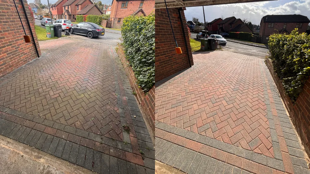 We clean block paving, patios, paths and paving slabs, removing dirt, moss, algae, lichen, oil stains and built-up grime from exterior hard surfaces. Our driveway and patio cleaning services are available across Tonbridge, Tunbridge Wells, Sevenoaks, Maidstone, West Malling and surrounding areas, using professional equipment and treatments suited to each surface.